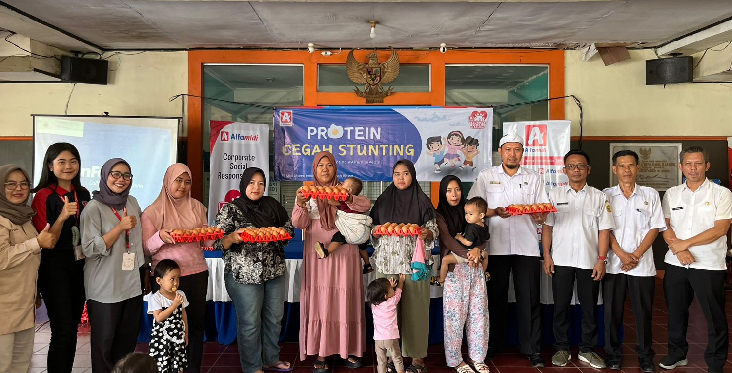 Dalam upaya mendukung percepatan penanganan stunting di Indonesia, Alfamidi menyalurkan program Protein Cegah Stunting berupa 1.110 butir telur kepada 37 anak terindikasi stunting di Kecamatan Gunung Sindur, Kabupaten Bogor, Rabu (30/4/2025). Setiap Keluarga Risiko Stunting (KRS) mendapatkan pasokan telur ayam secara berkala setiap bulannya yang diharapkan dapat memenuhi sebagian kebutuhan