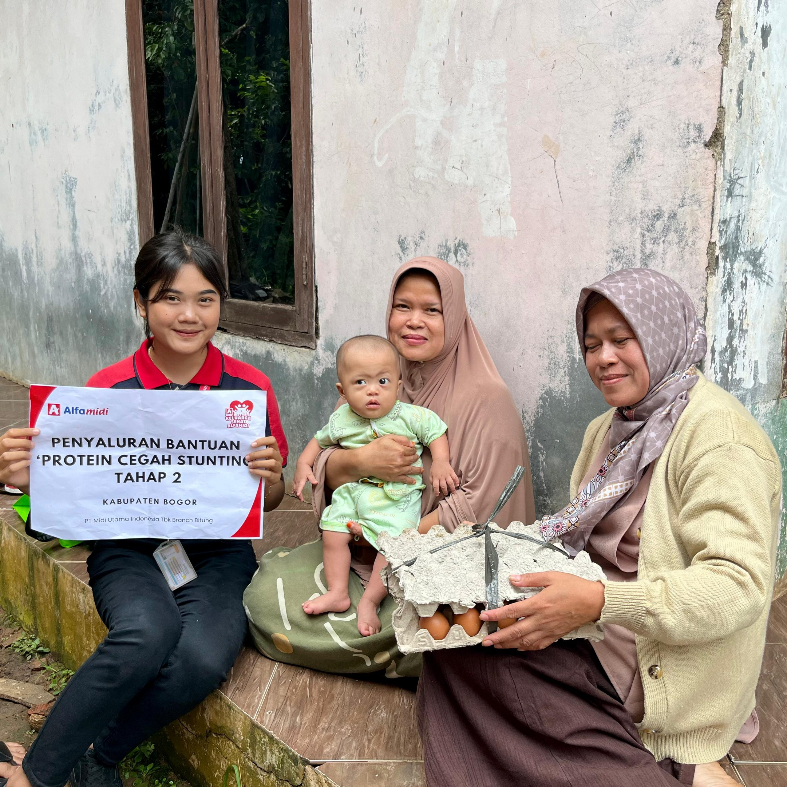 Sebanyak 1.110 butir telur kembali Alfamidi Cabang Bitung salurkan kepada 37 anak yang terindikasi stunting di Kabupaten Bogor, Jawa Barat pada (25/5/2025). Masing-masing anak menerima 30 butir telur sebagai bagian dari program bantuan gizi tahap kedua melalui kegiatan Corporate Social Responsibility (CSR) Protein Cegah Stunting. Langkah ini sebagai bentuk dukungan terhadap