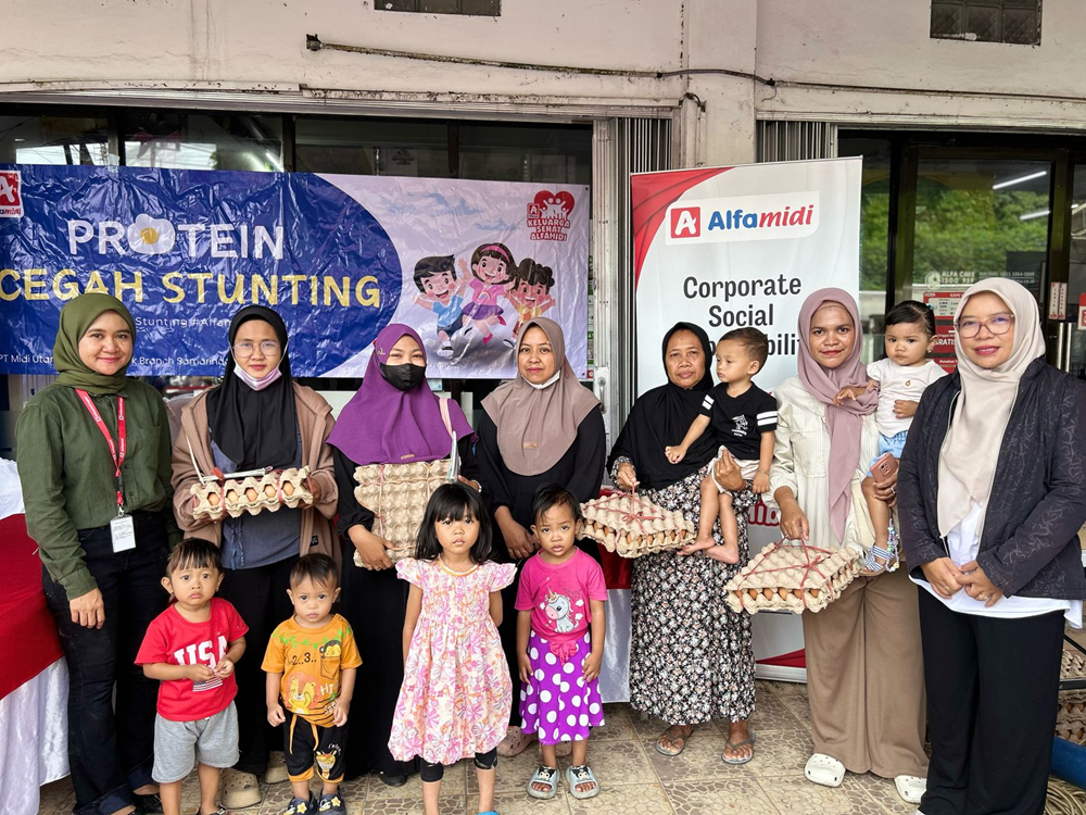 PT Midi Utama Indonesia Tbk (Alfamidi) Cabang Medan kembali melanjutkan komitmennya dalam penanganan stunting melalui program corporate social responsibility (CSR) bertajuk "Protein Cegah Stunting" tahap keempat. Bantuan berupa 1.800 butir telur disalurkan kepada 30 anak di Kota Medan pada Rabu (26/2/2025).  Penyerahan bantuan ini dilakukan di empat Puskesmas, yaitu Puskesmas Desa