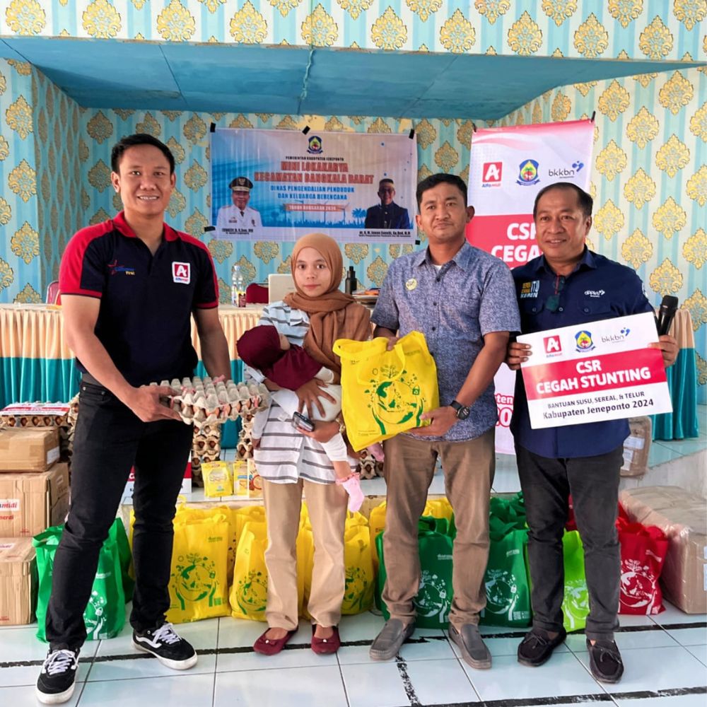 PT Midi Utama Indonesia Tbk atau Alfamidi Branch Makassar bekerja sama dengan BKKBN Kabupaten Jeneponto meluncurkan program Corporate Social Responsibility (CSR) penanggulangan stunting yang dilaksanakan di Kantor Kecamatan Bangkala Barat, Kabupaten Jeneponto, Sulawesi Selatan, Sabtu (13/7/24).
