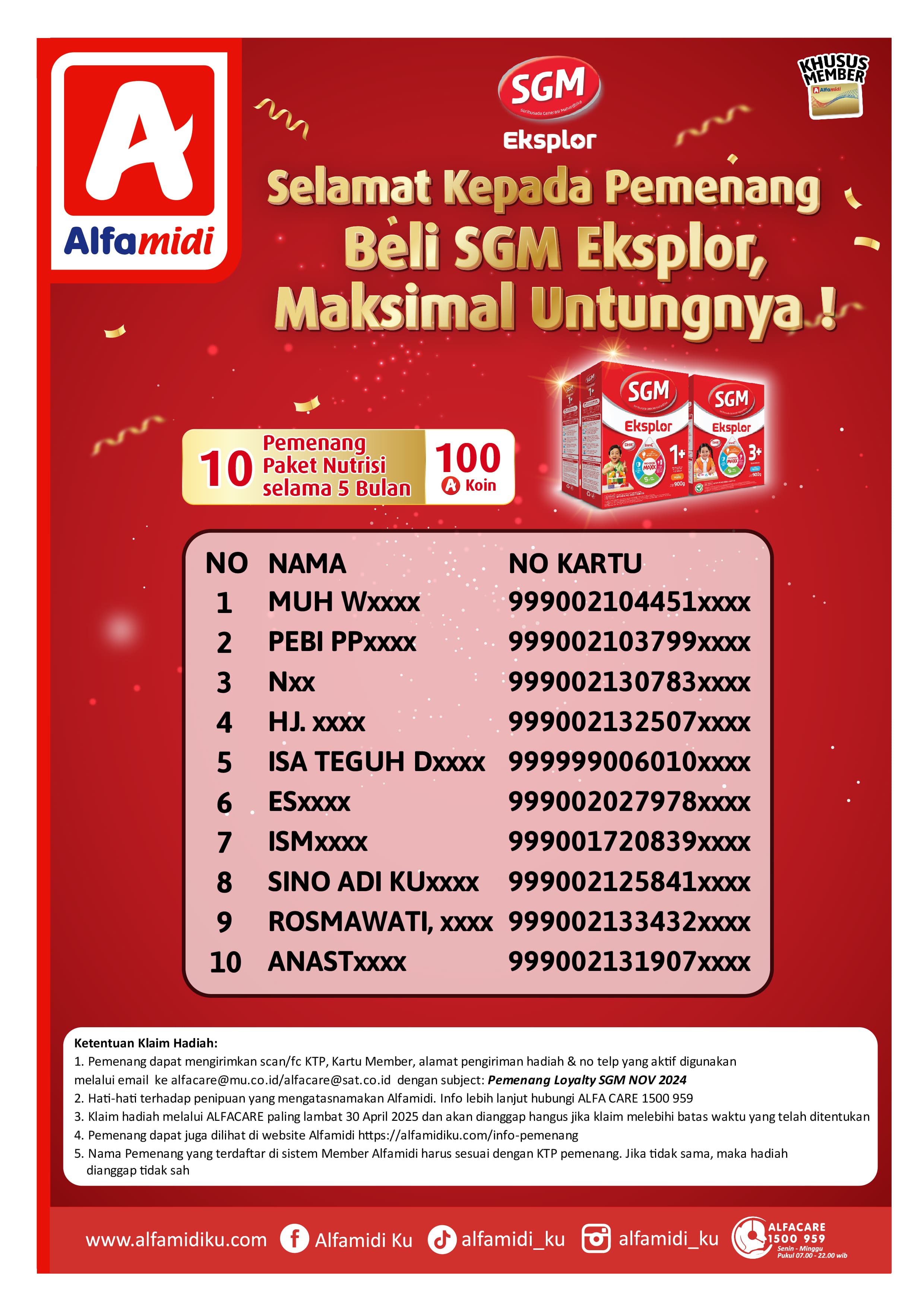 Pemenang Loyalty Member Alfamidi X SGM Eksplor 2024