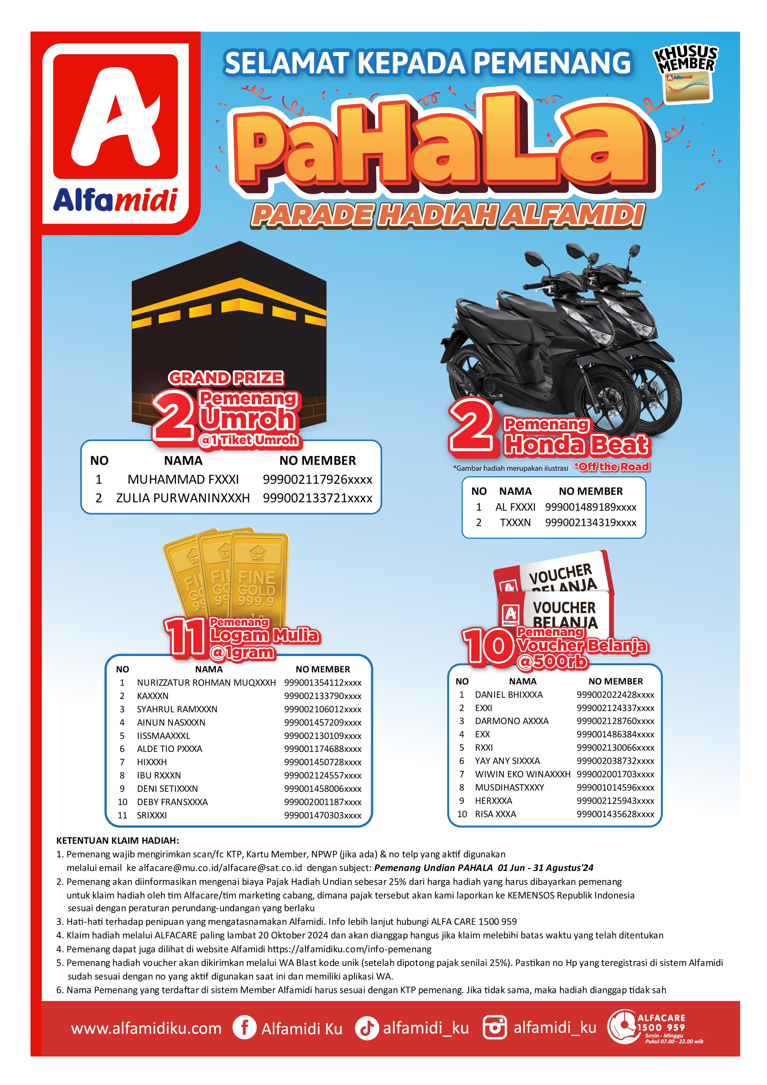 PEMENANG PAHALA, PARADE HADIAH ALFAMIDI LOYALTY MEMBER ALFAMIDI 2024