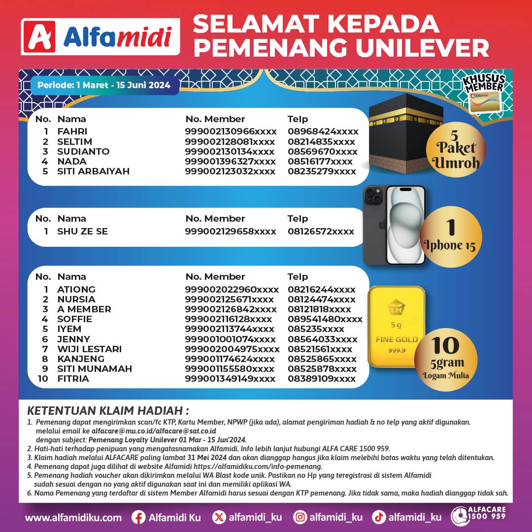 Pemenang Loyalty Member Alfamidi X Unilever 2024